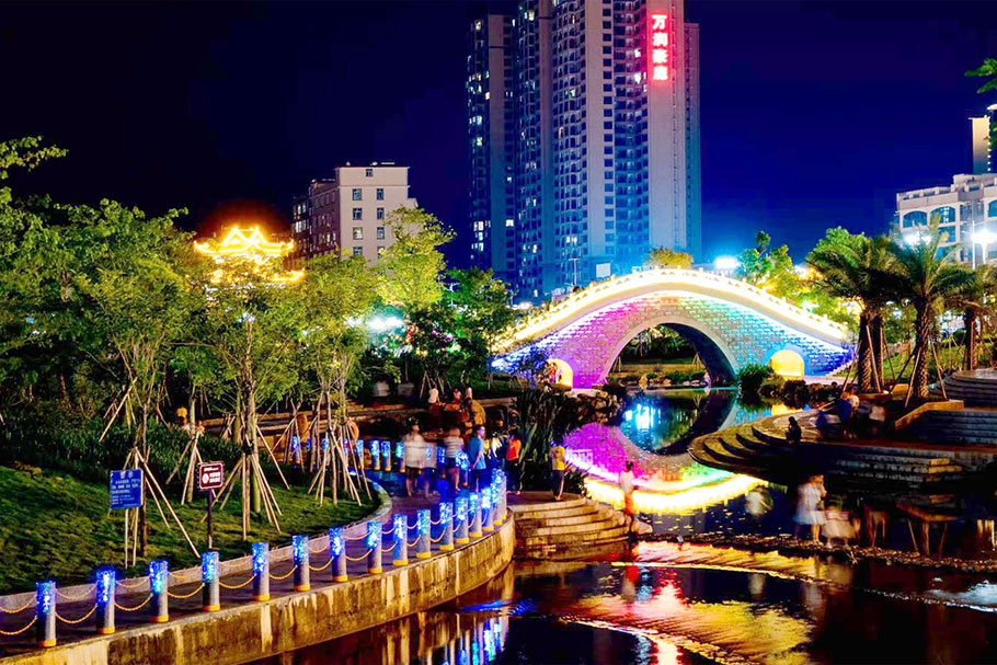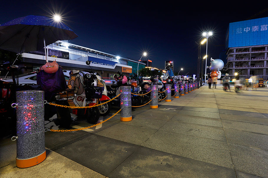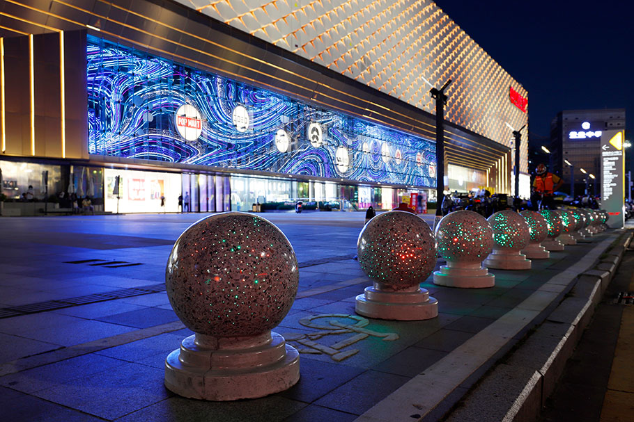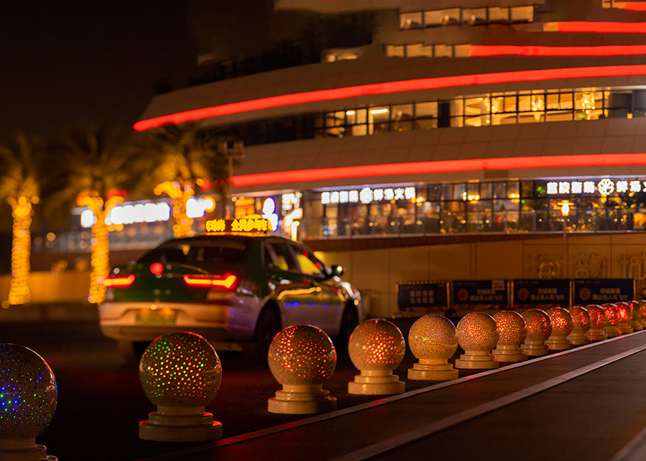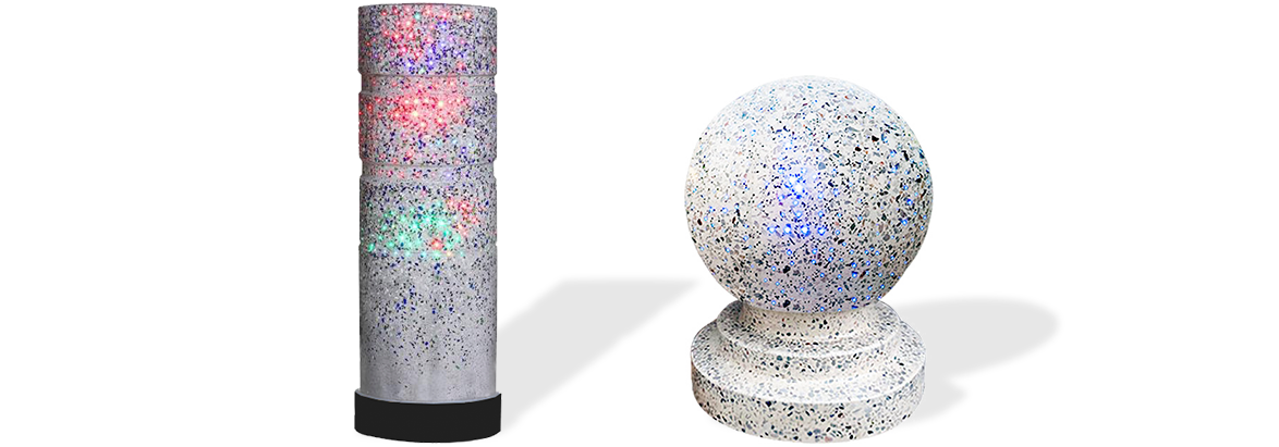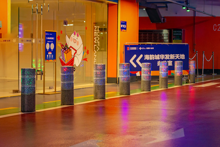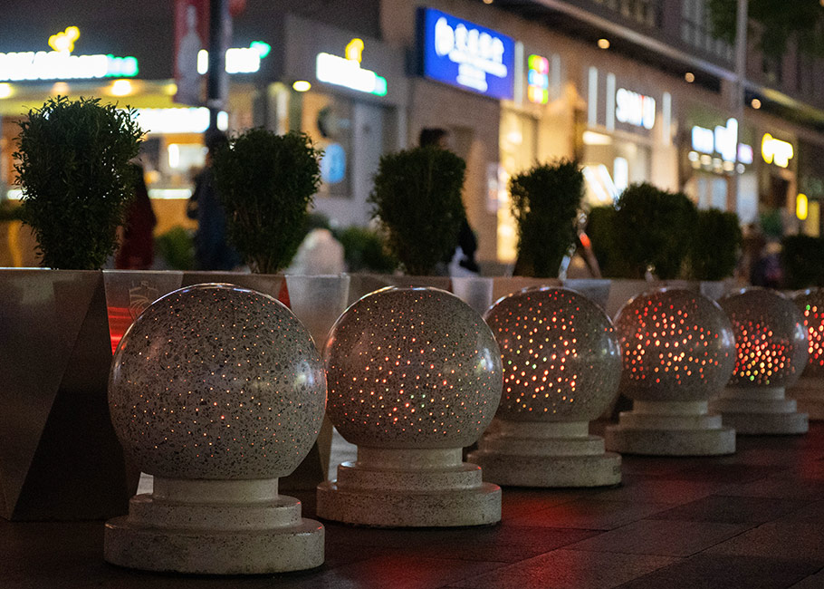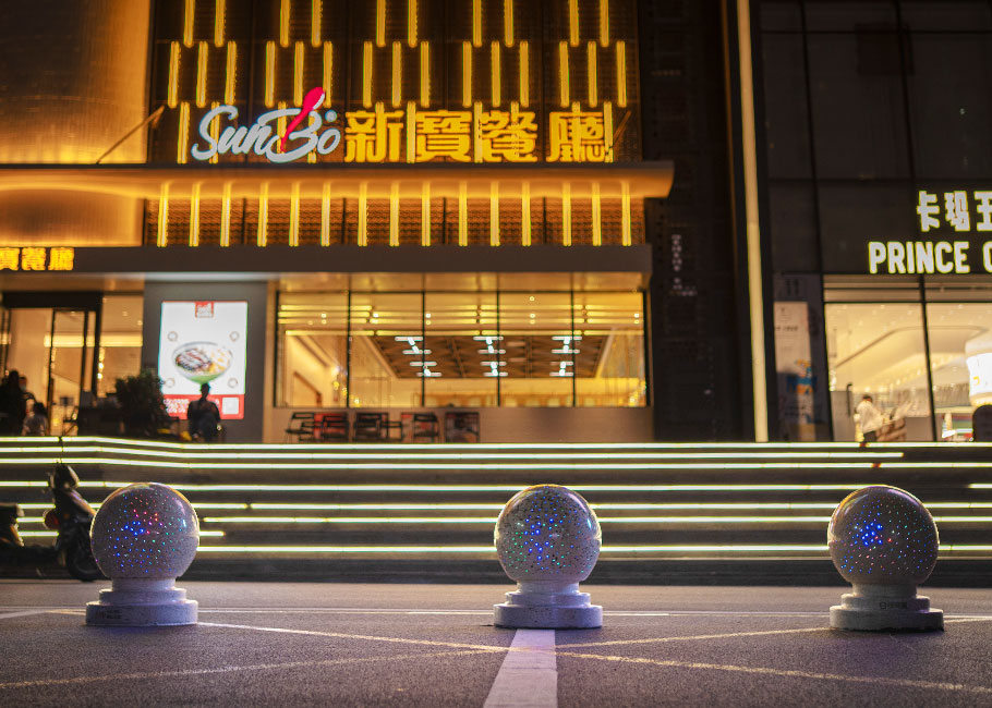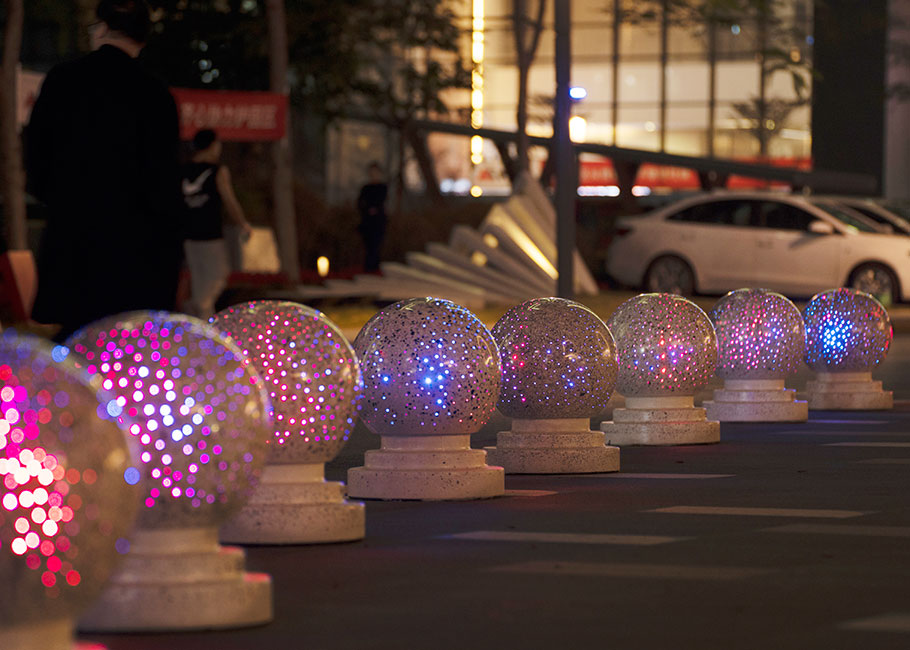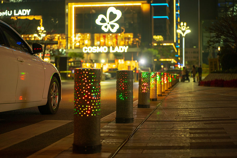 新型路障石材具有擋車功能,提升場(chǎng)所的形象和安全性,夜晚展現(xiàn)出特別絢麗的效果